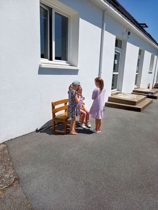 Pour rappel, en fin d'année dernière, suite à la demande des élèves représentants un banc de l'amitié avait été installé dans la cour de récréation.